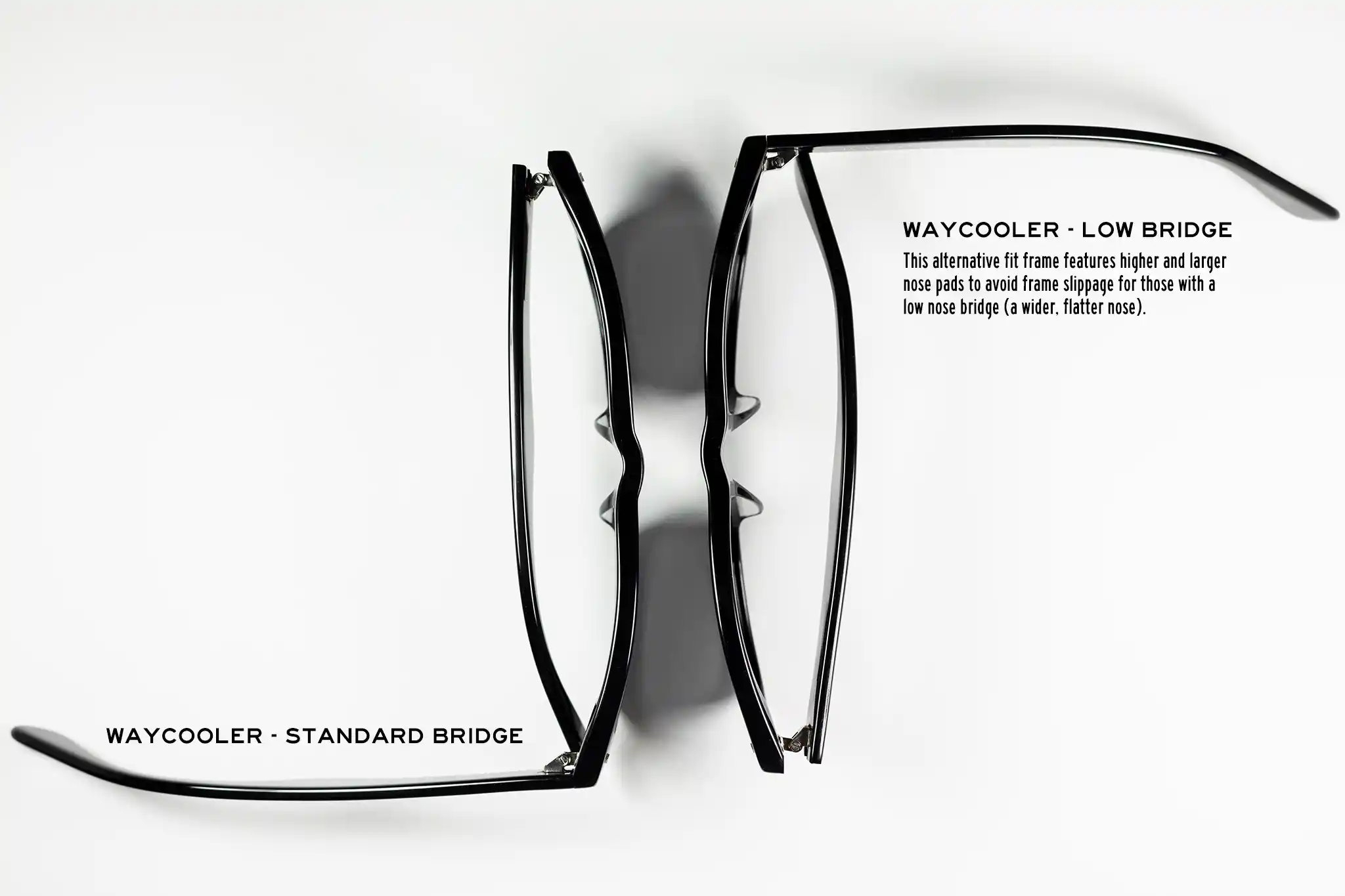 Inspired by vintage design and a retro style, these acetate frames are universally flattering. This Low Bridge Fit Waycooler features higher and larger nose pads to better fit those with wider, flatter noses. All day comfort and better fit without compromising style.